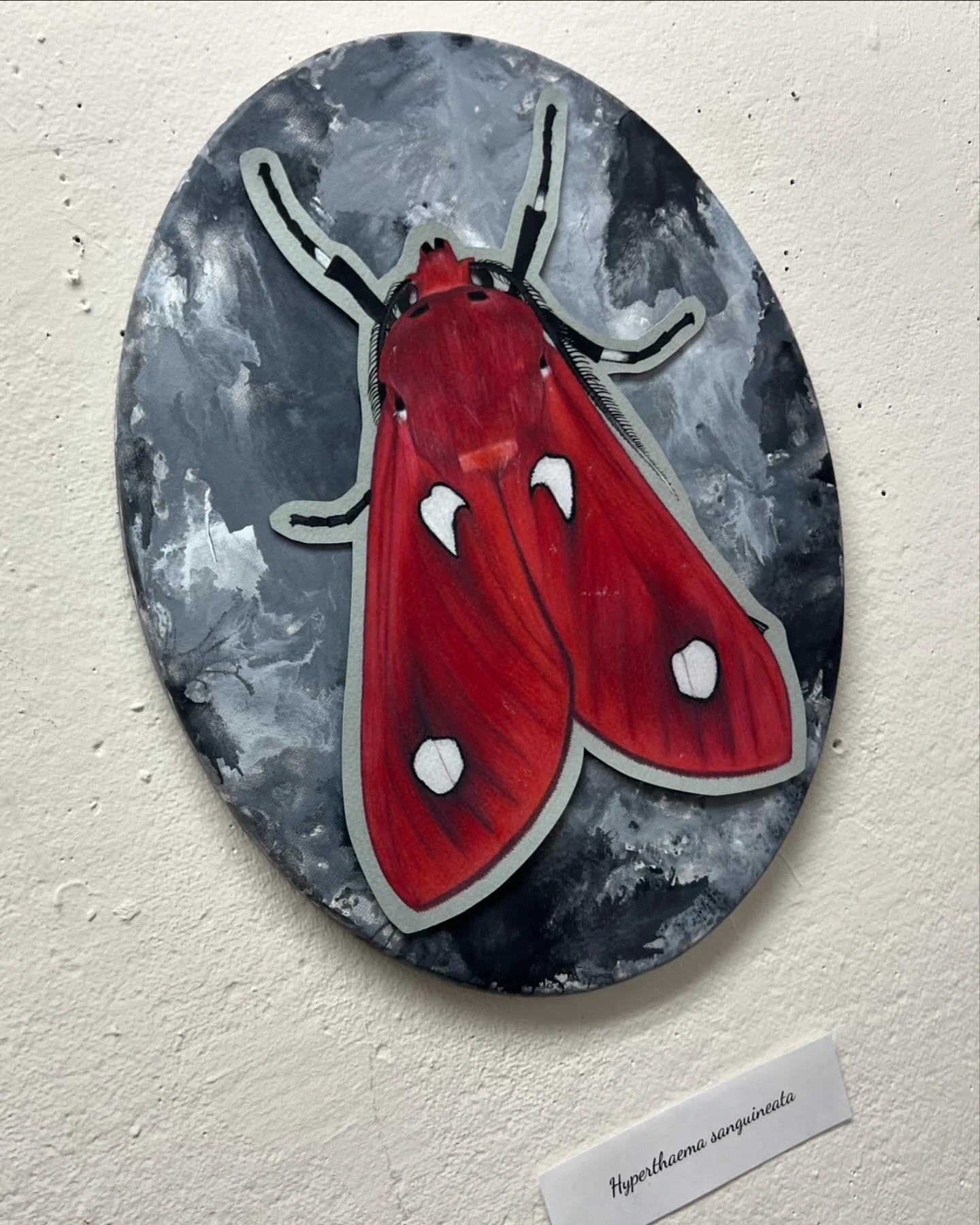 Hyperthaema sanguineata is a species of vibrant moth found in South America. It is known to be a rather elusive species, with no widely accepted common name. The moth is a striking red color with white markings, and it belongs to the Erebidae family of moths.
