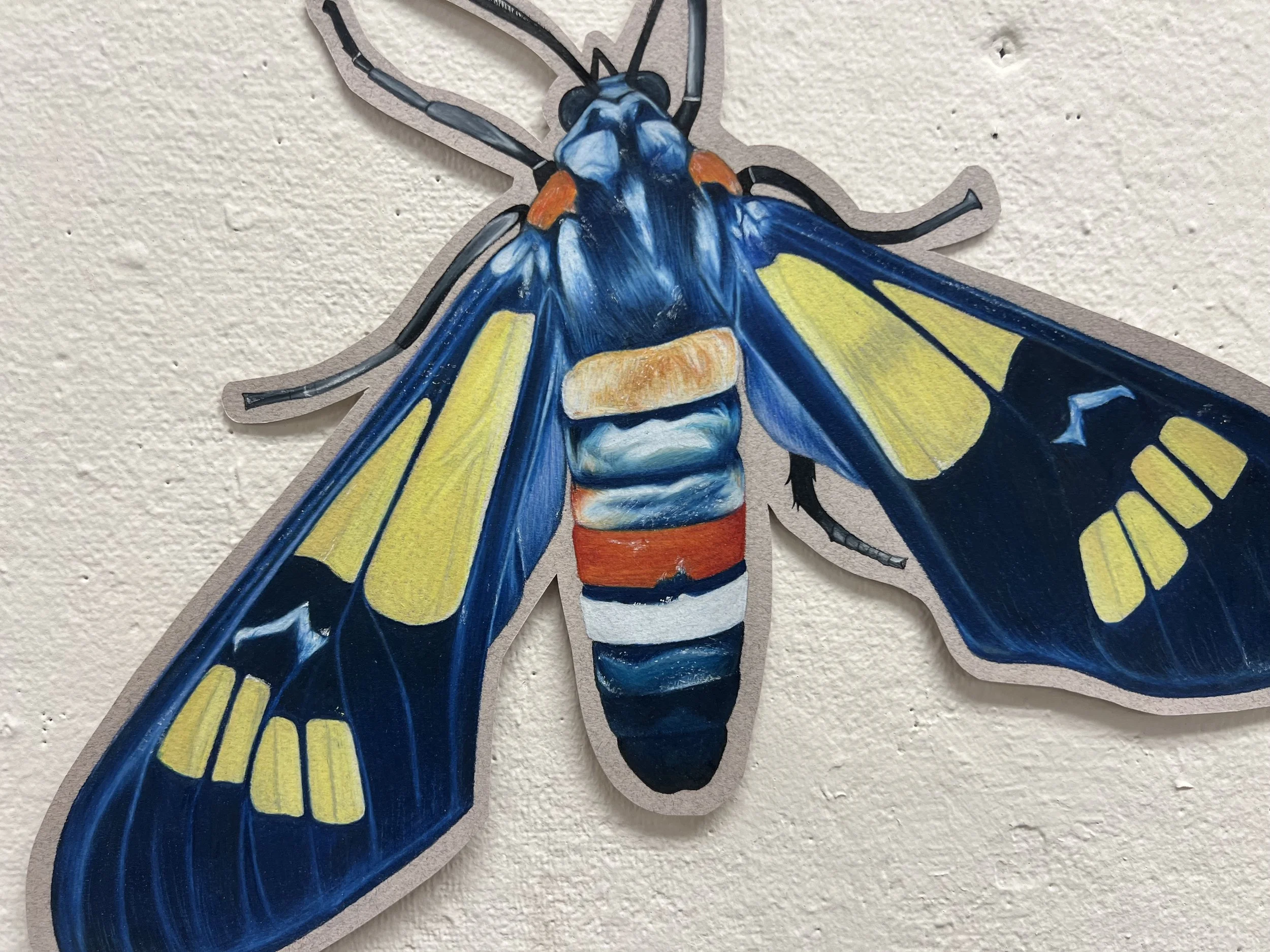 In nature, there are many species of moths that attempt to mimic the more threatening form of a wasp. Euchromia folletii is a type of wasp moth that has an incredible range of colors within its wings and its body. While this drawing may be quite large, the insect in reality only measures around 0.6 inches.